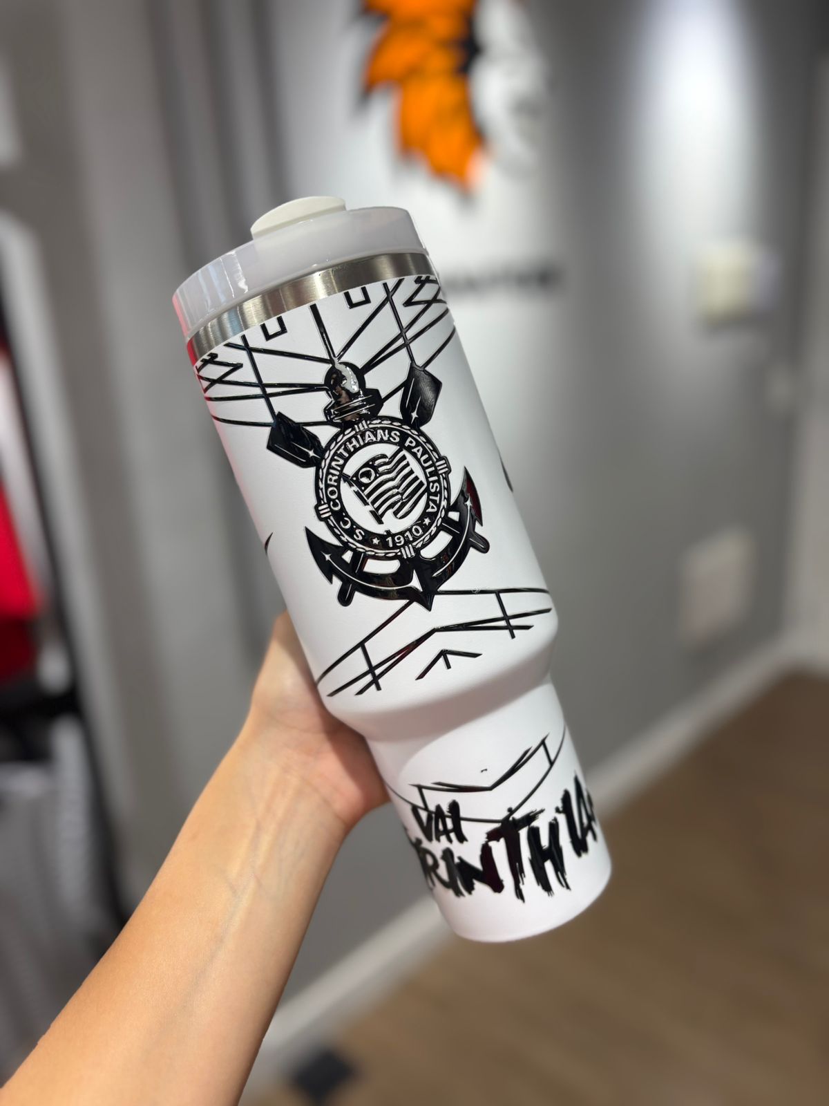 COPO TÉRMICO CORINTHIANS GEOMÉTRICO BRANCO